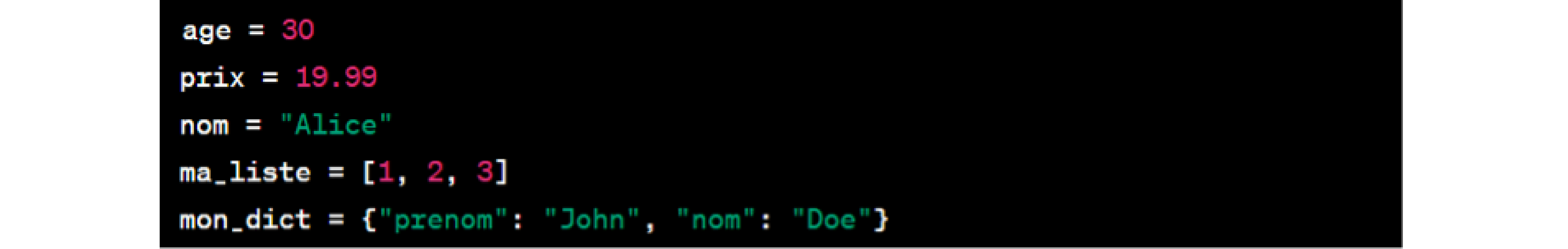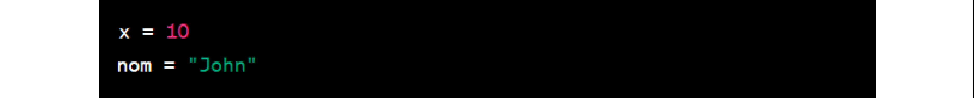 Python est un langage à typage dynamique, ce qui signifie que vous n’avez pas besoin de déclarer explicitement le type de variable. Python en déduit automatiquement en fonction de la valeur affectée.