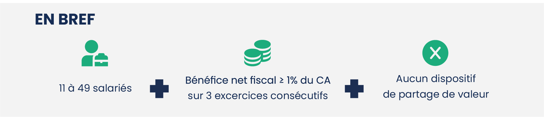 - Effectif : Entreprises de 11 à 49 salariés, non soumises actuellement à l’obligation de participation,