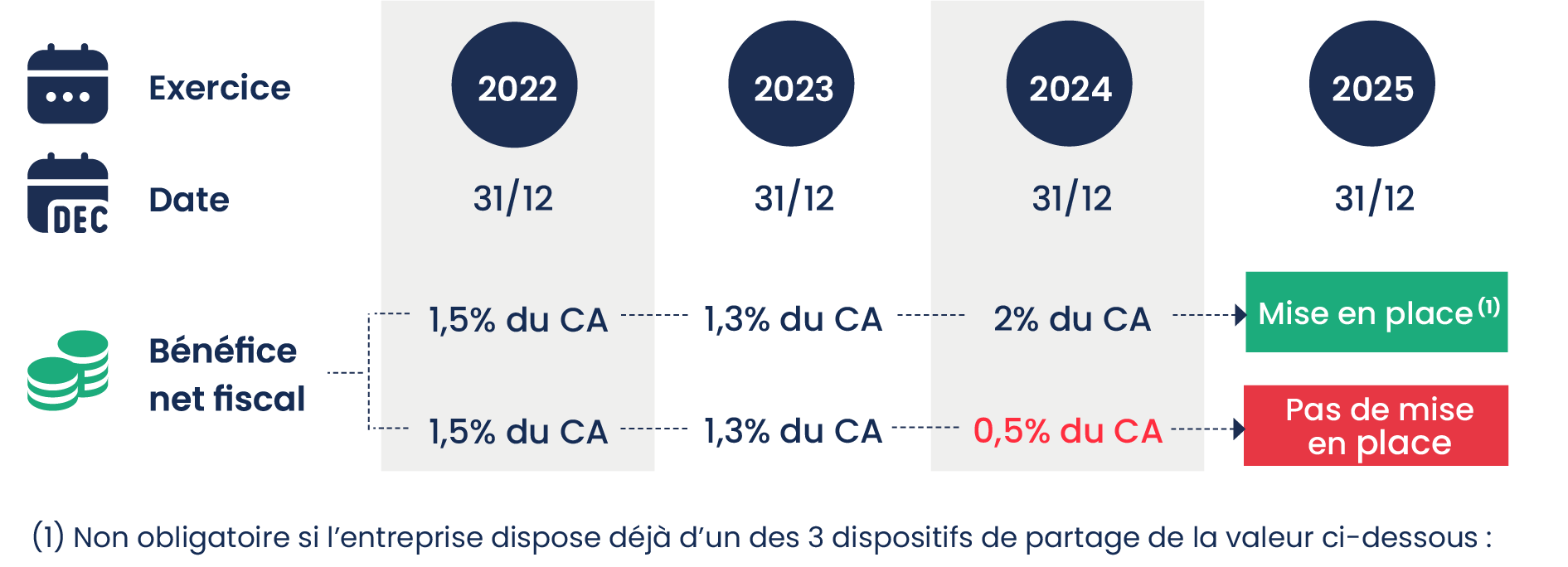 - Absence de dispositifs préexistants : Les entreprises ayant déjà mis en place un dispositif de participation, d’intéressement ou de PPV au titre de l’exercice suivant ne sont pas concernées.